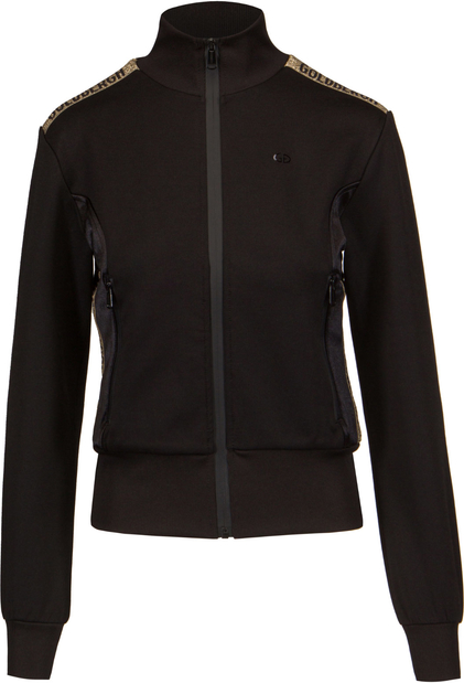 Bluza damska GOLDBERGH MENHITA to luksus w sportowym wydaniu, który podkreślają złote detale z lurexu. Zestaw ją ze spodniami MOIRA, aby otrzymać spójny look. Wykonana z podwójnie tkanej dzianiny łączącej bawełnę i techniczne materiały. Dżersejowa podszewka. Suwak główny oraz kieszenie – wodoszczelne. Rękawy, stójka oraz dół bluzy wykończony żebrowanym ściągaczem. Talia ozdobiona połyskującą satyną i złotym lampasem.