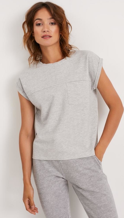 Sportowa bluzka z kieszonką: – luźny krój, – wykonana z miękkiej bawełny, – na kieszonce nadruk z logo, – występuje w kolorze szarym i białym.