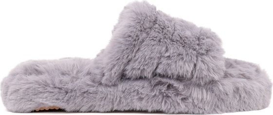 Kapcie damskie szare na grupej,płaskiej podeszwie. Cholewka udekorowana z boku kokardkami. Idealne kapcie po domu.