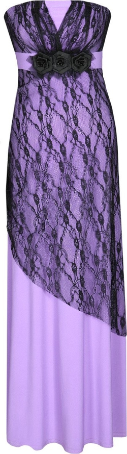 Sukienka w nasyconej barwie z koronkowym wykończeniem będzie idealna na sylwestrowy bal, studniówkowe szaleństwo czy weselną uroczystość. Długość maxi dodaje jej uroku i szykownego charakteru, wydłuży przy tym masywną sylwetkę puszystej użytkowniczki, czyniąc ją delikatną w odbiorze. Klasyczna linia łódki przy dekolcie, pozbawionym ramiączek, wyeksponowana czarną koronką i aplikacją w postaci trzech różyczek, podkreśli biust. Taka oprawa nie wymaga już biżuterii. Całość jest przy tym bardzo elegancka i wytworna. Docenić należy odcięcie tuż pod linią biustu, które u pań nieposiadających talii, wyeksponuje najwęższą część ciała, optycznie wyszczuplając sylwetkę. Zestawienie nasyconego koloru i czarnej koronki to połączenie idealne. A lejący, oddychający materiał bazowy, na który asymetrycznie naszyto tajemniczą, koronkę będzie pięknie wirował w tańcu, dzięki czemu każda użytkowniczka poczuje się królową balu.